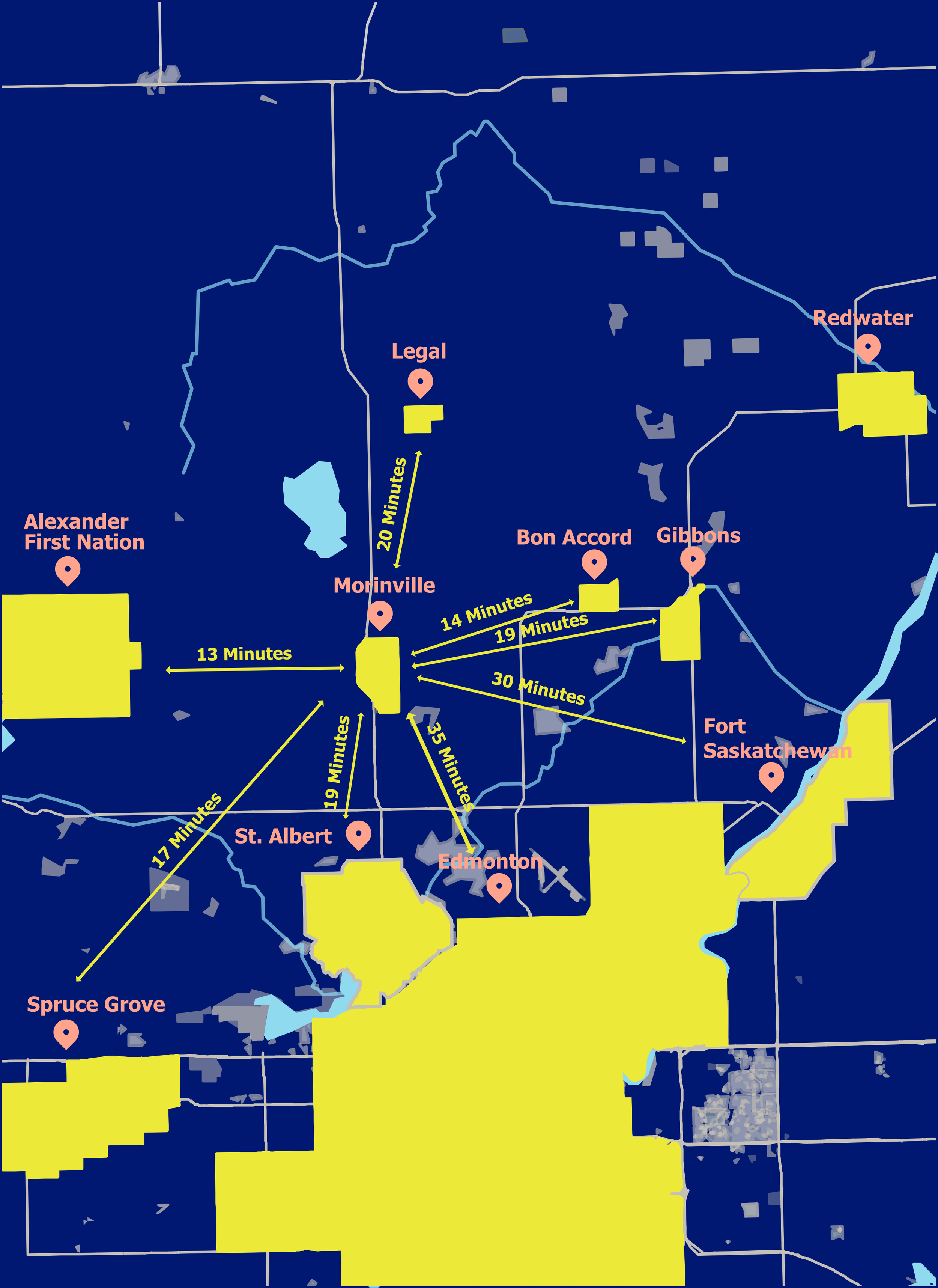 We’re exactly where you want to be. Morinville is the urban service centre of Sturgeon County and the commercial hub for the surrounding area. Strategically positioned on Highway 2, the corridor to the North, with easy access to rail and air services, and the nearby markets of St. Albert, Edmonton, and Canadian Forces Base Edmonton.
